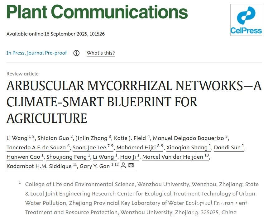 近日,成人爽a毛片一区二区免费_久久久久久久国产精品视频_免费黄网视频_在线观看国产视频_久久久久久久久久一区_亚洲欧美日韩在线生命与环境科学学院甘延太团队联合国际多所高校科研人员,在Cell Press期刊《Plant Communications》(中科院一区TOP,影响因子11.4)发表题为 “Arbuscular mycorrhizal networks — a climate - smart blueprint for agriculture”的论文,该研究系统阐述了丛枝菌根真菌(AMF)在提升农业生态系统韧性、减少化学投入、增强土壤健康等方面的多重功能,并提出以AMF为重要因子的“微生物驱动型农业”新模式,为全球可持续生态农业提供了理论依据与技术蓝图。