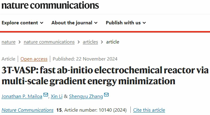 近日,成人爽a毛片一区二区免费_久久久久久久国产精品视频_免费黄网视频_在线观看国产视频_久久久久久久久久一区_亚洲欧美日韩在线计算机与人工智能学院Jonathan P. Mailoa团队在国际顶级期刊Nature Communications发表题为《3T-VASP: fast ab-initio electrochemical reactor via multi-scale gradient energy minimization》的研究论文。Jonathan P. Mailoa为论文第一作者,Jonathan P. Mailoa、腾讯量子实验室张胜誉博士为论文共同通讯作者。