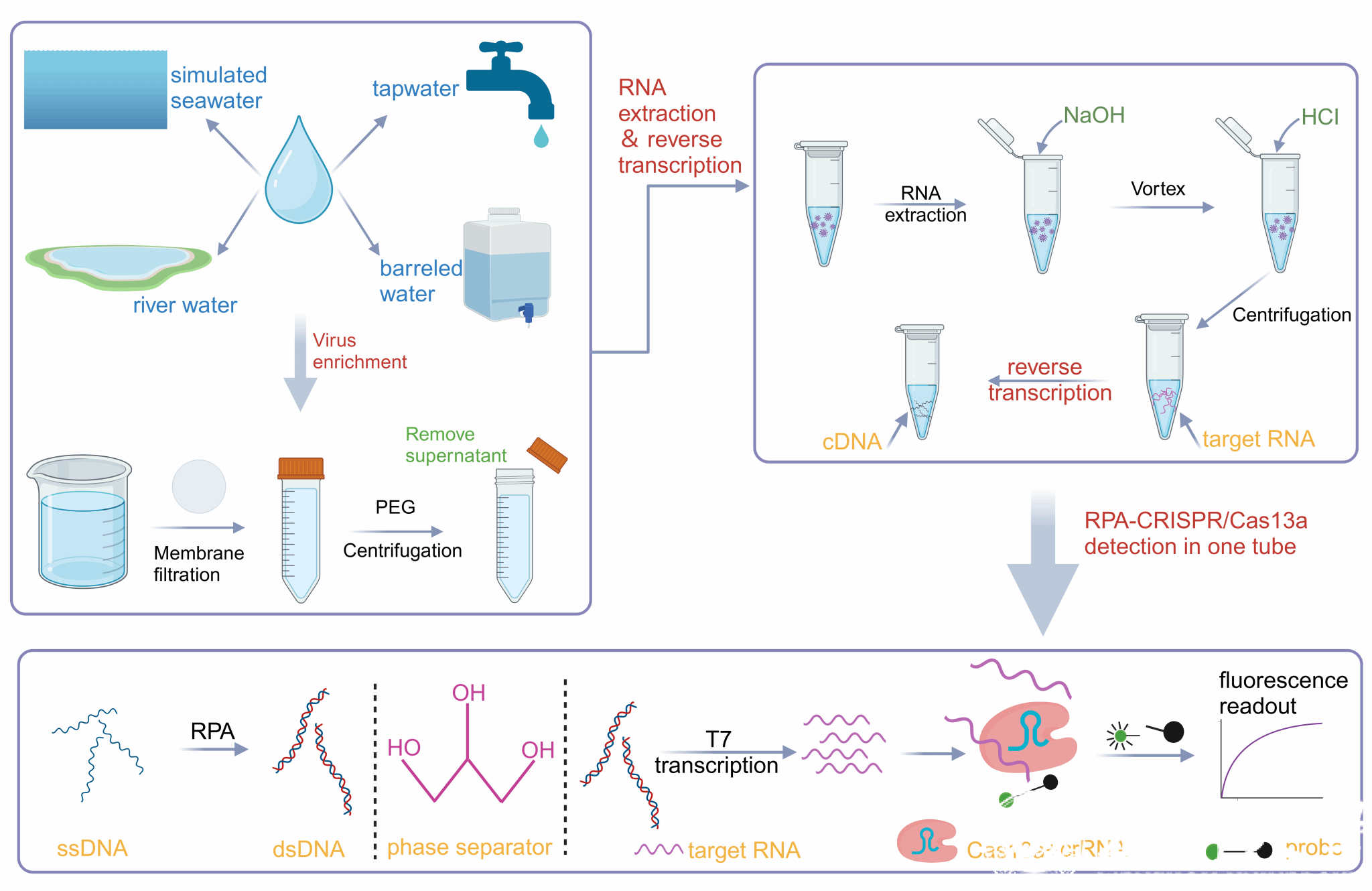 成人爽a毛片一区二区免费_久久久久久久国产精品视频_免费黄网视频_在线观看国产视频_久久久久久久久久一区_亚洲欧美日韩在线生命与环境科学学院吴明江教授团队结合自身优势开展环境毒理和病原检测等交叉研究,取得了系列研究成果。近日,苏来金教授课题组在环境领域著名学术期刊Environmental International杂志上(SCI一区TOP 期刊,IF=10.3)发表了题为“CRISPR/Cas13a combined with reverse transcription and RPA for NoV GⅡ.4 monitoring in water environments”的研究性论文。该论文基于重组酶聚合酶扩增技术(RPA)和CRISPR/Cas13a系统,建立了一种适用于多种水环境、准确可靠、简便快速的GⅡ.4型诺如病毒定量检测方法,该方法在复杂水环境和资源有限地区的诺如病毒快速检测表现出巨大的应用潜力。