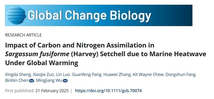 近日,成人爽a毛片一区二区免费_久久久久久久国产精品视频_免费黄网视频_在线观看国产视频_久久久久久久久久一区_亚洲欧美日韩在线生命与环境科学学院羊栖菜研究团队在环境生态领域国际知名期刊《Global Change Biology》上在线发表了一篇题为《Impact of Carbon and Nitrogen Assimilation in Sargassum fusiforme (Harvey) Setchell due to Marine Heatwave Under Global Warming》的研究论文。该研究深入探讨了在全球气候变暖的背景下,海洋热浪事件对区域特色经济海藻羊栖菜生理机制的影响,并为培育耐热品系的羊栖菜以及优化沿海水产养殖管理提供了重要的科学依据和实用参考。