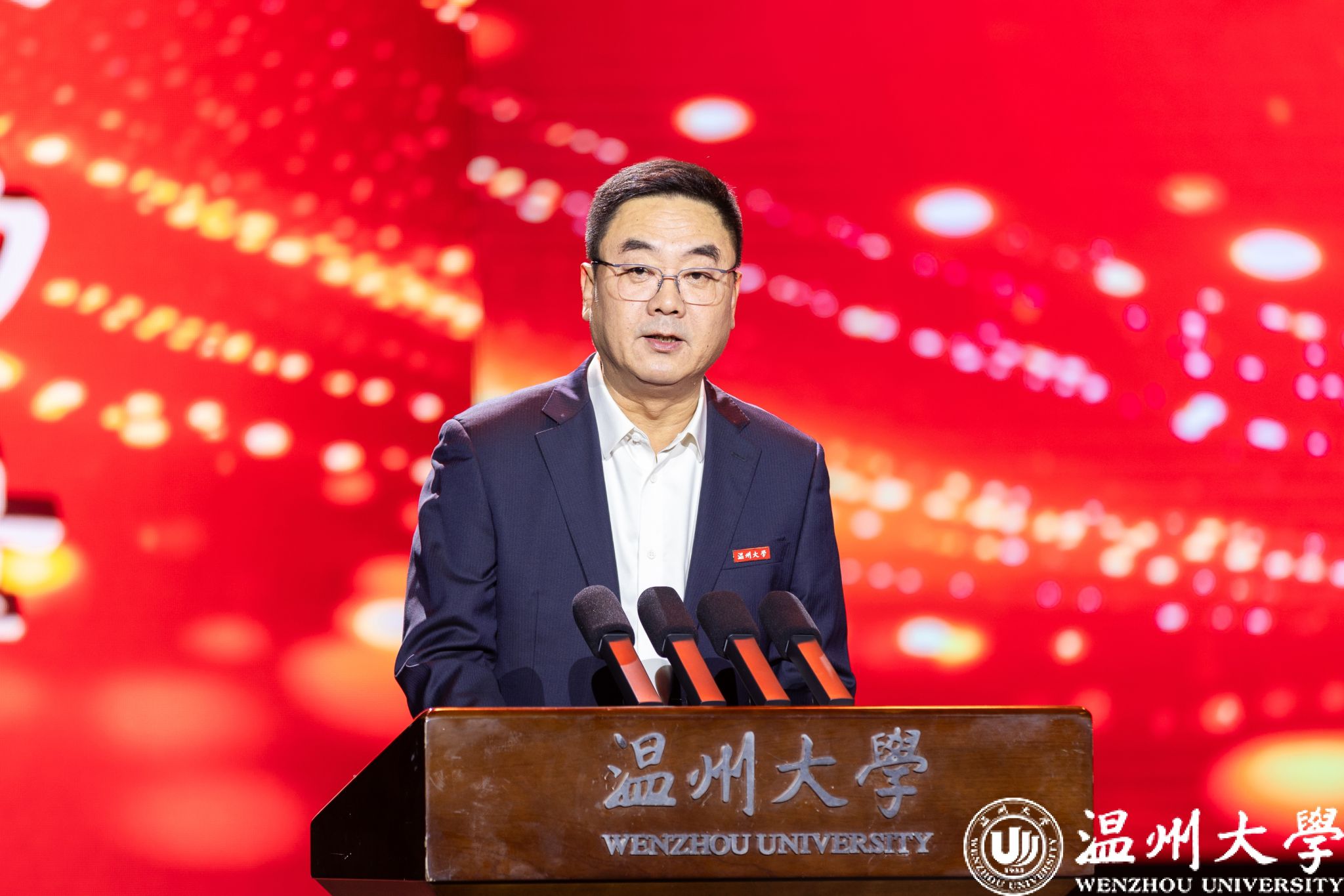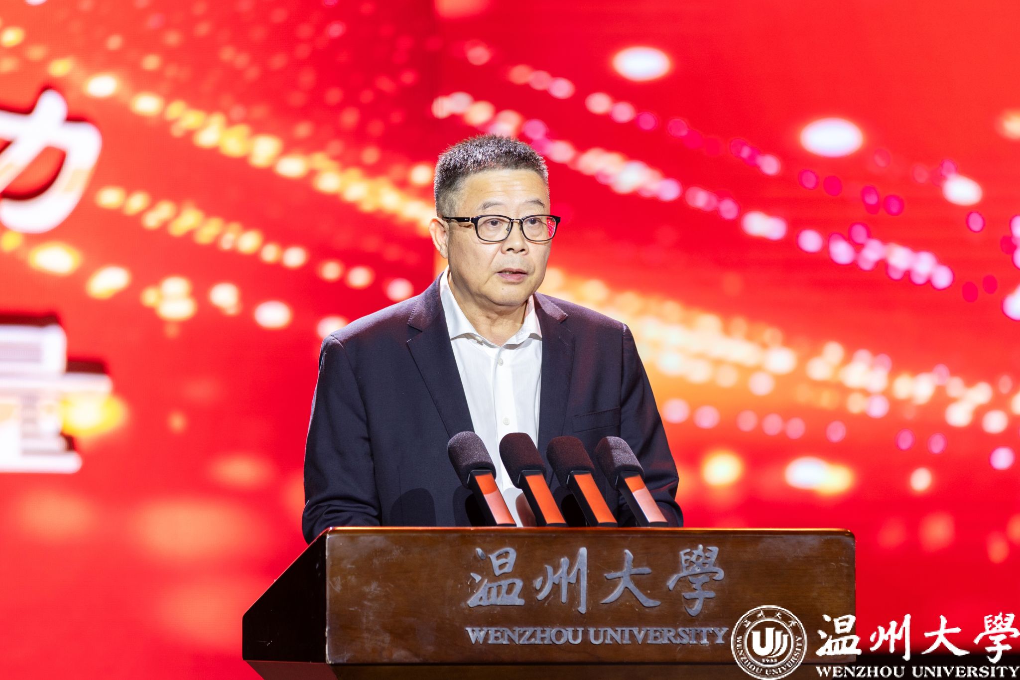 华峰集团党委书记、总裁林建一致辞,他向本届获奖集体和个人致以热烈祝贺。他指出,华峰品德奖已在温大深耕十三载,百余位榜样集体与个人如星辰般,照亮温大“厚培德本、深濬智源”的育人路,也为高校“立德树人”写下生动注脚。本届获奖者中,师者以匠心育桃李、学子以行动立长志、师生团队以担当报家国,在平凡中铸伟大、于细微处显大爱,生动诠释“求学问是,敢为人先”的温大校训。作为温大同行者,华峰秉持“以德为先”,强调奖项不仅是表彰,更是对温大理念的回应、温州“义利并举”精神的赓续,以及对“国无德不兴,人无德不立”的践行。他表示,温大将奖项融入校园文化的做法,坚定了华峰持续投入的决心,希望师生以获奖者为镜,将“小我”融入强国事业,华峰也将继续与温大同心,共促崇德之风盛行。