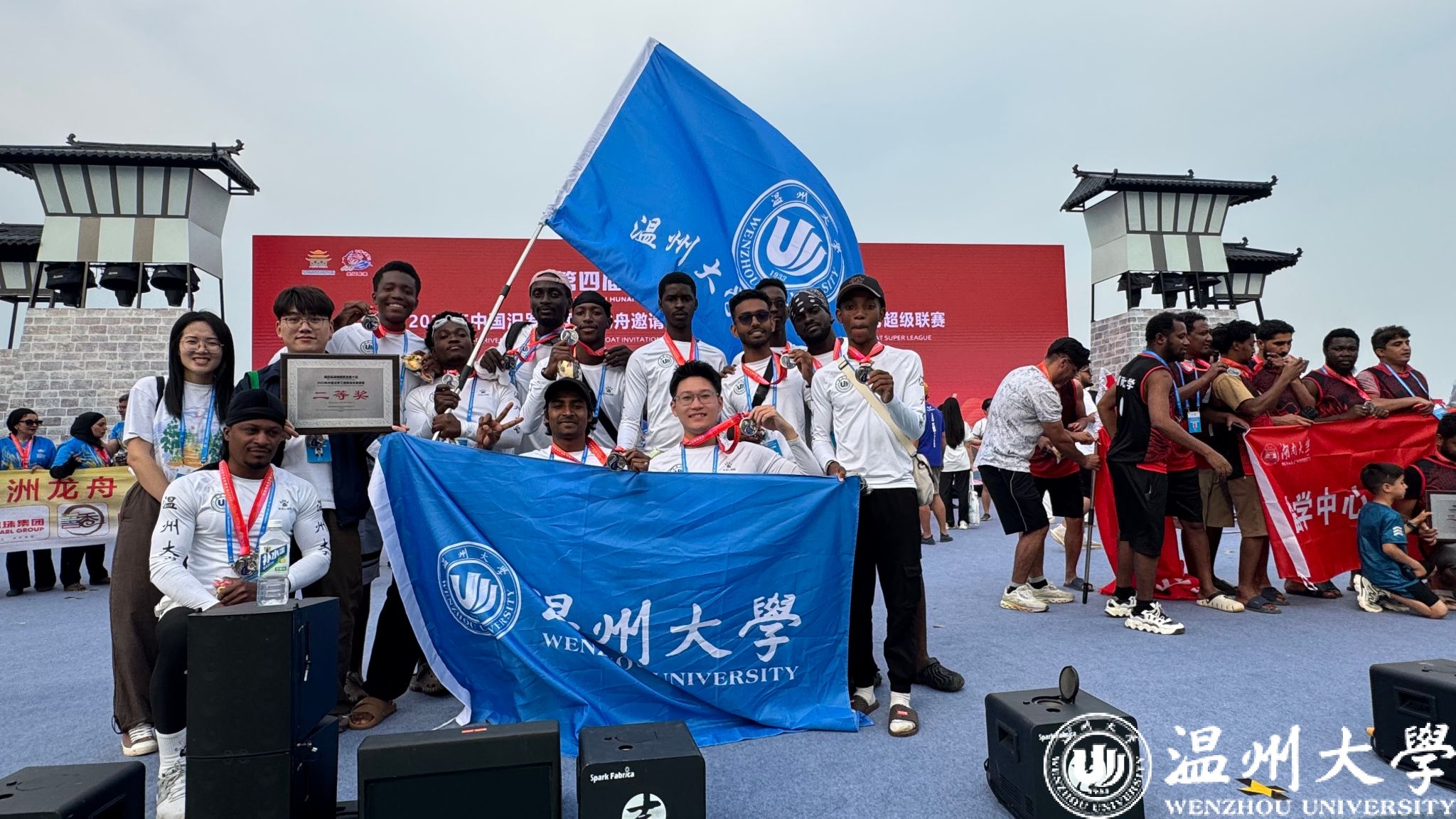 5月24日,我校国际龙舟队应邀赴湖南汨罗参加2025年中国汨罗江国际龙舟邀请赛暨“屈原酒”杯第二届龙舟超级联赛。来自越南、孟加拉、摩洛哥、尼日利亚、利比里亚、赞比亚、津巴布韦、索马里等国的留学生代表校国际龙舟队与日本、韩国、新西兰、同济大学、北京理工大学、中南大学等12支国际组龙舟队展开激烈角逐,他们以昂扬的斗志和非凡的团结精神勇夺国际组二等奖、高校组第二名的好成绩。