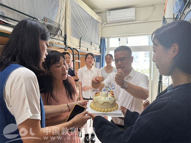 蛋糕、蜡烛、贺卡……老师与同学们微笑着围上前来,为她齐唱生日歌。“没想到报到第一天就有这样的惊喜,真的超级感动!虽然离开家过生日,却感受到了像家一样的温暖。”她说。