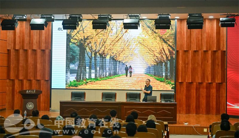 讲座伊始,观众便被一幅幅呈现校园风光、温瑞塘河宋韵风貌、商港历史图景与现代城市活力的影像集锦所吸引。那些承载地域文化记忆的画面,瞬间唤醒了大家探索摄影美学的热情与期待。“手机摄影的价值远不止于记录,更是文化传播的鲜活载体。”胡铸鑫说,当镜头对准塘河的粼粼波光时,便定格了宋韵的流转;聚焦商港的繁忙码头,就留存了千年的文脉;捕捉城市的烟火日常,则传递了温州的幸福温度。