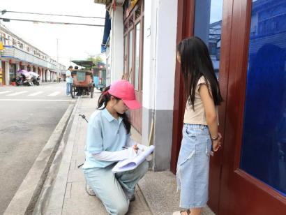 实践队队员在采访当地小朋友