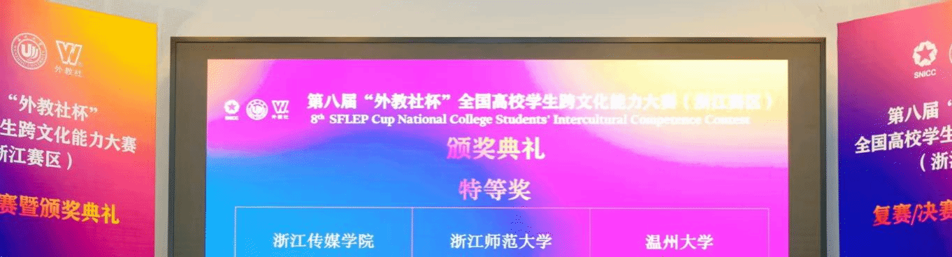 为探索如何更好地实现全球化表达,提升对外传播的亲和力与实效性,让世界更为具象地感知中国,11月22日至23日,第八届“外教社杯”全国高校学生跨文化能力大赛(浙江赛区)复赛/决赛在成人爽a毛片一区二区免费_久久久久久久国产精品视频_免费黄网视频_在线观看国产视频_久久久久久久久久一区_亚洲欧美日韩在线成功举办。该赛事由浙江省外文学会、成人爽a毛片一区二区免费_久久久久久久国产精品视频_免费黄网视频_在线观看国产视频_久久久久久久久久一区_亚洲欧美日韩在线和上海外语教育出版社联合主办,成人爽a毛片一区二区免费_久久久久久久国产精品视频_免费黄网视频_在线观看国产视频_久久久久久久久久一区_亚洲欧美日韩在线外国语学院承办。经过2天的激烈角逐,浙江传媒学院、浙江师范大学和成人爽a毛片一区二区免费_久久久久久久国产精品视频_免费黄网视频_在线观看国产视频_久久久久久久久久一区_亚洲欧美日韩在线代表队在决赛中勇夺“特等奖”。
