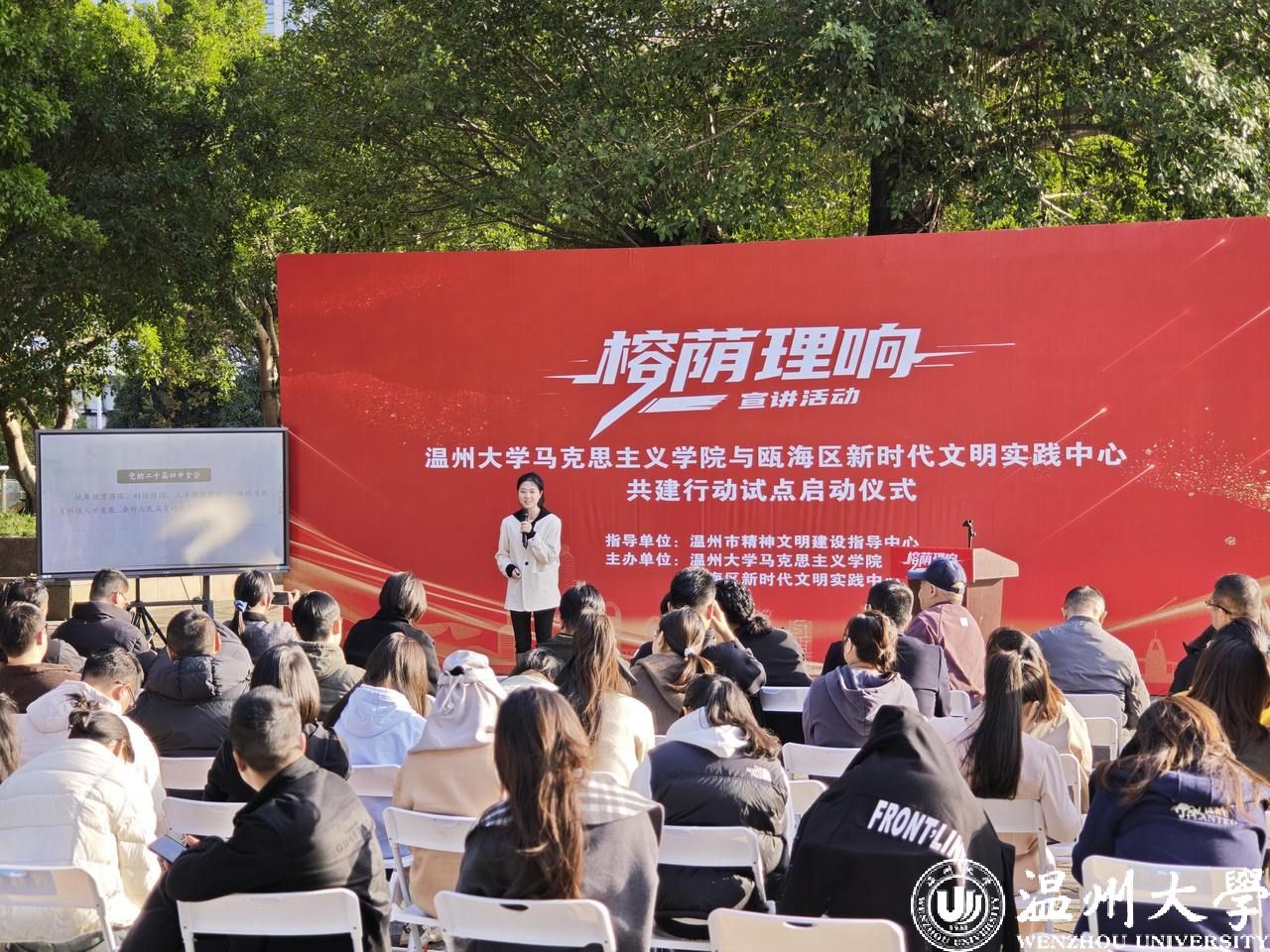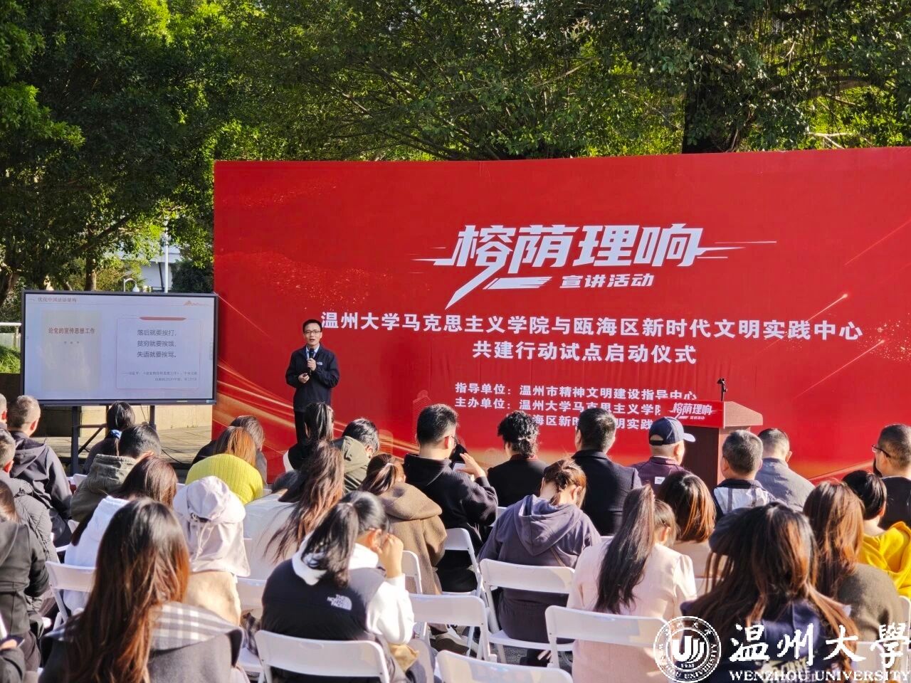 据介绍,温大马院与瓯海新时代文明实践中心共建行动,将设立实践教学基地,组织青年师生开展实地调研、教学研究、社会实践等活动,形成调研报告。结合瓯海“榕树下的文明实践”品牌,共建“榕荫理响”宣讲品牌,博士讲师团还将绘制榕树下文明地图,邀请百姓群众一起讲好瓯海故事。