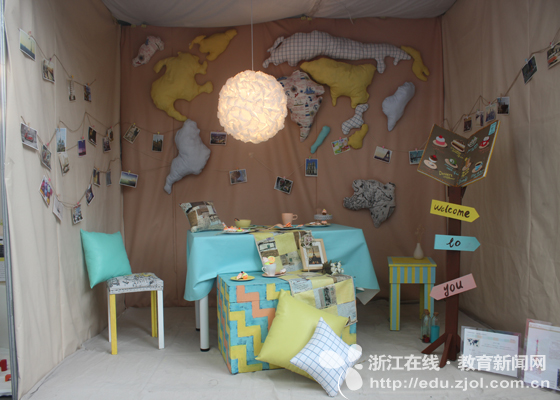 十几个由瓯江学院室内配饰专业的毕业生精心打造的小空间吸引着人们的眼球。鸟窝式的圆形沙发造就了半封闭空间有利阅读,现代化的小区座椅设计集美观和实用于一身,以及专为婴童设计的多功能“儿童床”,为都市白领设计的睡眠软卧,为儿童设计的交互益智玩具等,充满对生活细节的人文关怀;富有中国古典美的屏风、书架、茶具等创新设计,及为企业量身定制的各种浓郁中国风的包装礼盒,则表达出学子们对美好中华文化的向往与开拓精神。